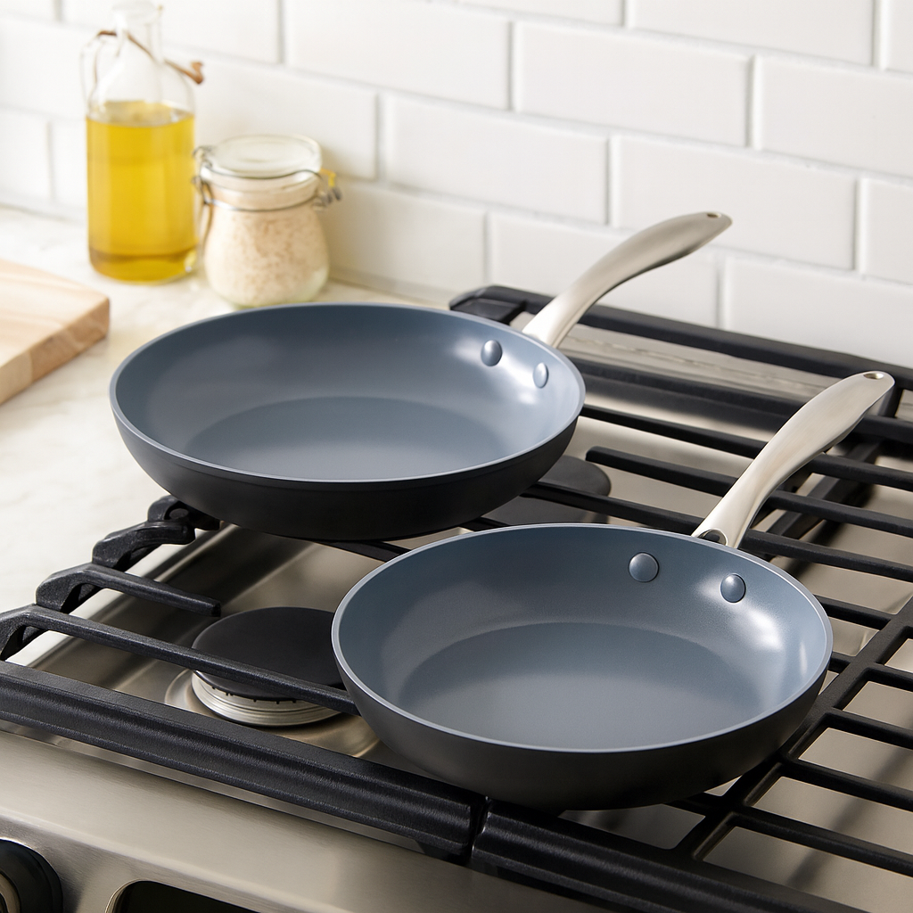 GreenPan markets both pans as suitable for oil-free healthy cooking. Technically possible when pans are new and used at appropriate temperatures. Practically: a small amount of oil or butter per cooking session extends coating life meaningfully. Fat creates a micro-buffer between food and ceramic surface, reduces friction, and lowers effective surface temperature during cooking. Oil-free cooking isn’t a health win if it degrades your coating in four months instead of twelve.